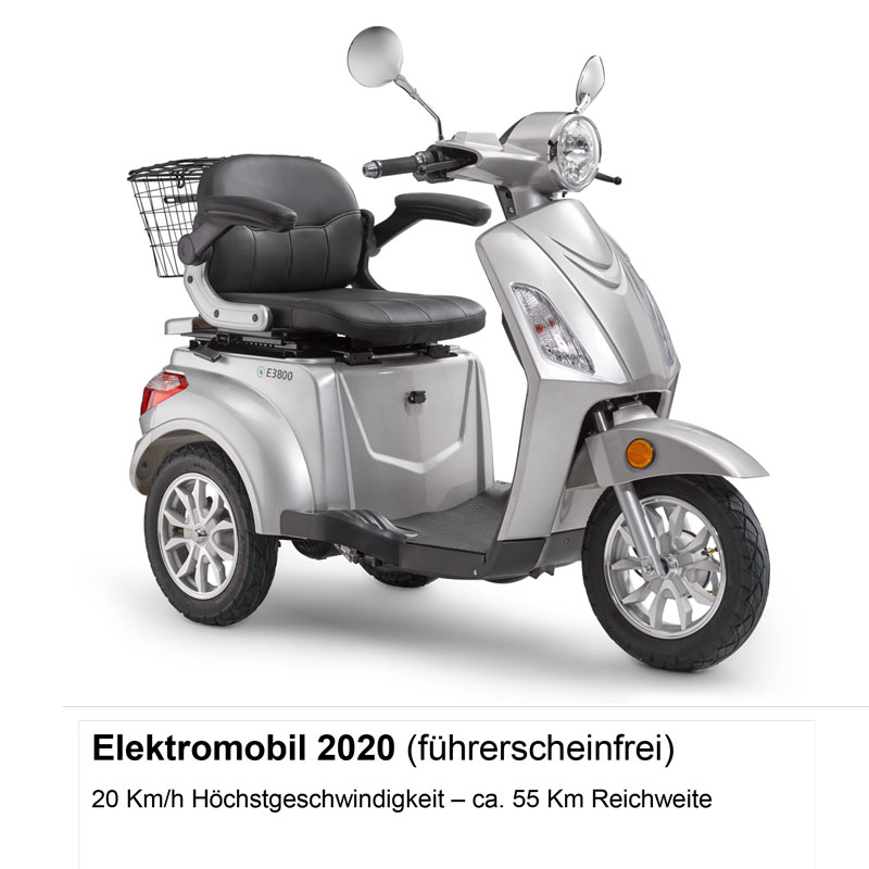 Bei uns haben Sie eine große Auswahl an Elektromobilen mit Geschwindigkeiten zwischen 6 Km/h – 15 Km/h.